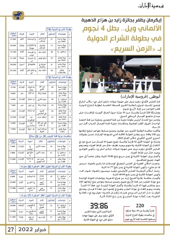4ج(و0ل4ة)1واحسدمة ُ 34مودة زيادة وبمشــاركة 220فارســاً وفارســة ،مــن 19دولــة حــول العــالم ،أقيمــت المنافســات عــى