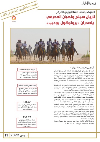 والناشئين لمسافة 112.47كلم حسب وجمـع الفـارس نهيـان عـي المحرمـي 233.27نقطـة عـى صهـوة «بـولي