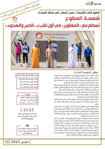 مارس 13 2022 ديلســاني» ،مســجلة 3:49:10ســاعة ،فيــا حلــت في المركــز الثالــث الفارســة