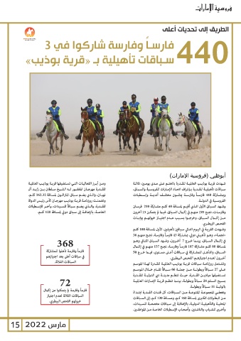72 لمسـافة 80كلـم مشـاركة 187فارسـاً وفارسـة ،نجـح 137منهـم في إكـال
