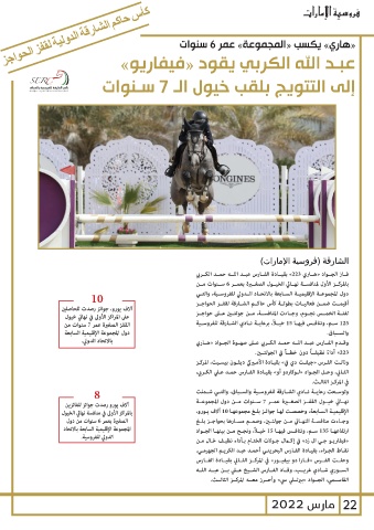 الســوري شــادي غريــب ،وقــاد الفــارس الشــيخ عــي بــن عبــد اللــه
