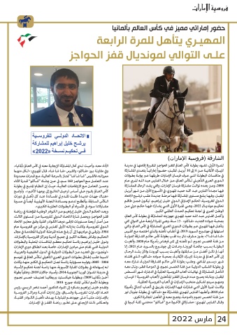 وانعـكاس ذلـك الإيجـابي عـى تطـور رياضـة القفـز في الإمـارات. 24مارس 2022