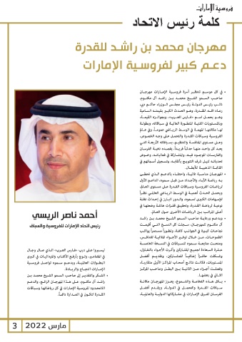 اللامحـدود لفروسـية الإمـارات في كل رياضاتهـا وسـباقات تحدياتـه لنيـل شرف التتويـج بألقابـه ،وتسـجيل أسـائهم في