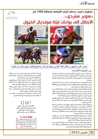 لمســافة 1900مــر ،إلى ســباق ديــربي الإمــارات. للخيـول العربيـة والمهجنـة الأصيلـة ،بواباتهـم مبكـراً في الليلـة الكبـرة لـكأس دبي