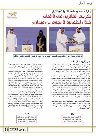 السـمو الشـيخ محمـد بـن راشـد آل مكتـوم ،لتؤكـد تفـوق دبي وجـاء حصولـه عـى هـذه الجائـزة لـإرث الضخـم الـذي تركـه في الفروسـية