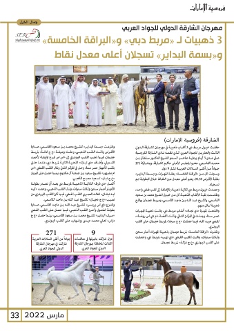 وانتزعـت «بسـمة البدايـر» للشـيخ محمـد بـن سـعود القاسـمي ،صـدارة الشارقة (فروسية الإمارات)