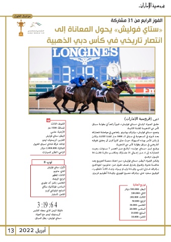 «ستاي فوليش» بطل السباق. السادس20.000 :