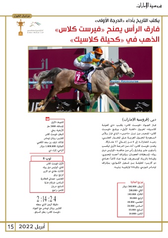 البطل :فيرست كلاس كلاس» المنحـدر مـن نسـل «داحـس» ،الـذي فـاز بـكأس