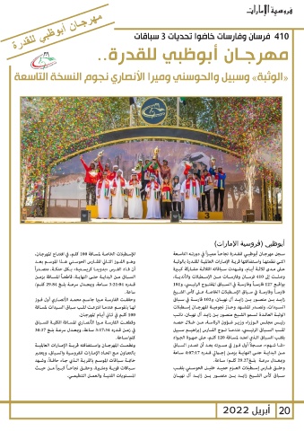 أن قـاد الفـرس «بدوينـا كريسـتينا» بـكل حنكـة ،متصـدراً سـجل مهرجـان أبوظبـي للقـدرة نجاحـاً مميـزاً في دورتـه التاسـعة
