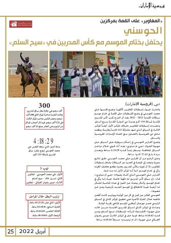 محمد الحوسني ليتوج بلقب سباق ونجــح الفــارس الحوســني في إحــكام ســيطرته عــى الســباق عــى