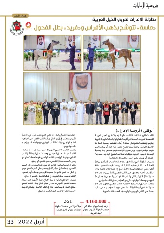 خصصت لبطولة الإمارات لجمال الإمارات لجمال الخيل العربية.