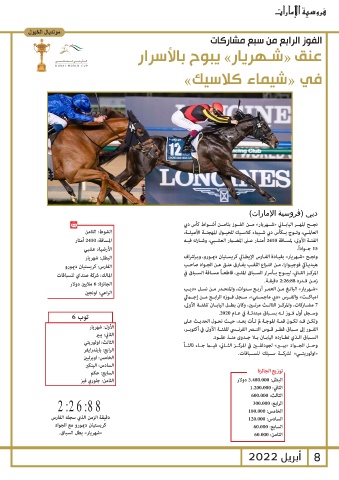 الجائزة 6 :ملايين دولار ونجـح «شـهريار» بقيـادة الفـارس الإيطـالي كريسـتيان ديمـورو ،وبـإشراف