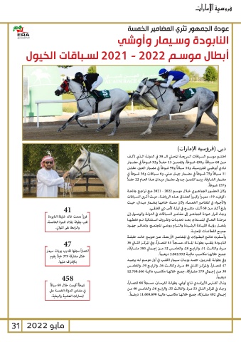 نـادي أبوظبـي للفروسـية ،و 14سـباقاً و 98شـوطاً في مضـار العـن ،مقابـل
