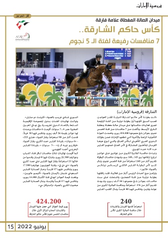 قدمـت أكـر مـن 90اسـتعراضاً ،وفـاز الجـواد «هـاري »223 الــرق الأوســط ،وتألفــت مــن 7منافســات مــن فئــة الخمــس