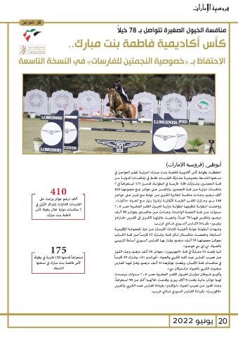 استعراضاً قدمتها 120فارسة في بطولة درهــم ،وتنافــس فيهــا 78خيــ ًا ،وذهبــت جائزتهــا الكــرى إلى الفــرس «فــارادو