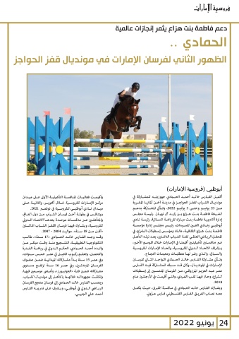 للفروســية ،ويشــارك فيهــا فرســان القفــز الشــباب الناشــئين إدارة أكاديميـة فاطمـة بنـت مبـارك للرياضـة النسـائية ،رئيسـة نـادي