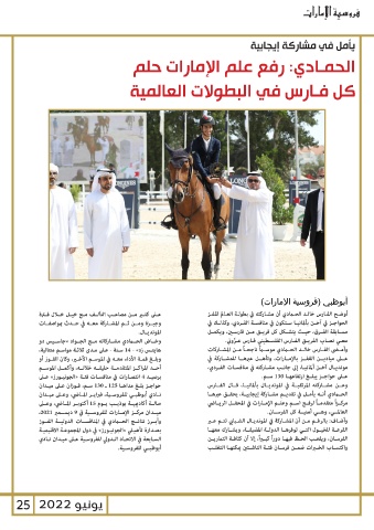 أبوظبــي للفروســية. وأضـاف :بالرغـم مـن أن المشـاركة في المونديـال الشـبابي تتـم عـر