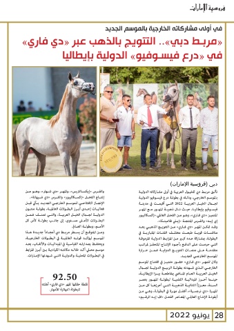 للبطولة النهائية للأمهار. الخيــل العربيــة العــام المــاضي بمقاطعــة بيــزا الإيطاليــة،