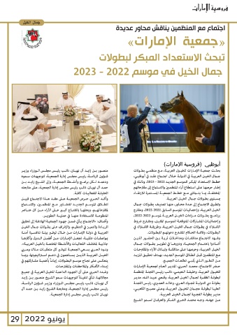 ودعمــه لــكل برامــج وأنشــطة الجمعيــة ،وإلى الشــيخ زايــد بــن بحثـت جمعيـة الإمـارات للخيـول العربيـة ،مـع منظمـي بطـولات