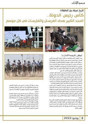 للخيــول العربيــة الأصيلــة ،بجوائــزه البالغــة 2.5مليــون بعــد التطــور الكبــر لمختلــف مسـاقات رياضــة الفروســية ،والتــي