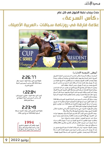 للخيول العربية. العربيـة داخـل الدولـة وخارجهـا ،علامـة فارقـة في روزنامـة السـباقات ،وحدثـاً