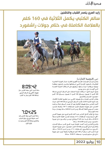 لمسافة 160كلم ،وحاز به اللقب. واصــل فرســان الإمــارات للقــدرة تألقهــم اللافــت خــال الجولــة الختاميــة