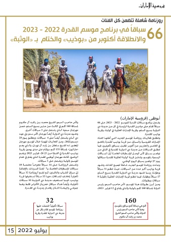 «ماراثـون» لمسـافة 155كلـم ،ويقـام عـى مـدى يومـن بقريـة الإمـارات للفروسـية والسـباق ،مـن قريـة بوذيـب للقـدرة بالختـم