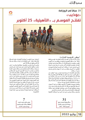 الدوليــة ،حيــث تتضمــن الروزنامــة تأهيليــات دوليــة لمســافة أبوظبي (فروسية الإمارات)
