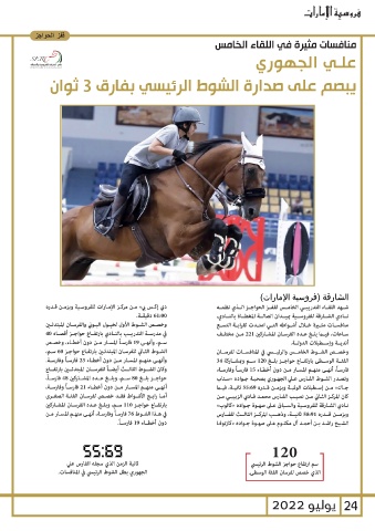 سـم ،وأنهـى 19فارسـاً المسـار مـن دون أخطـاء ،وخصـص سـاعات ،فيـا بلـغ عـدد الفرسـان المشـاركين 221مـن مختلـف