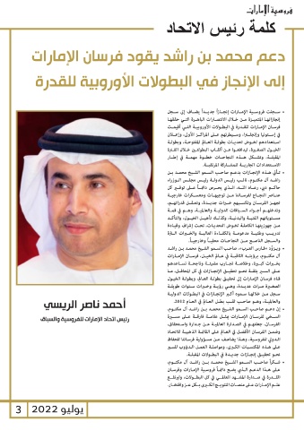رئيس اتحاد الإمارات للفروسية والسباق فرسـان الإمـارات للقـدرة في البطـولات الأوروبيـة التـي أقيمـت
