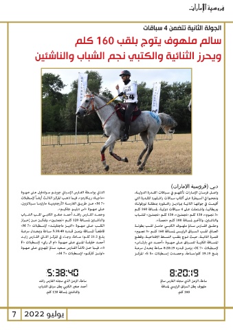 وحصــد الفــارس راشــد أحمــد صغــر الكتبــي لقــب الشــباب ببريطانيـا ،واشـتملت عـى 4سـباقات دوليـة ،لمسـافة 160كلـم