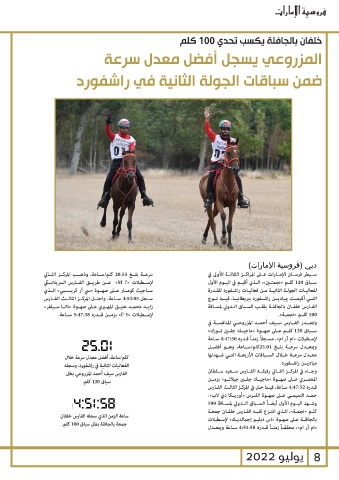 سرعــة بلــغ 20.55كلم/ســاعة ،وذهــب المركــز الثــاني دبي (فروسية الإمارات)