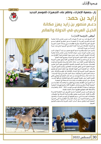الإمـارات للخيـول العربيـة ،عـى دعـم سـموه المتواصـل لهـذا القطـاع مـن