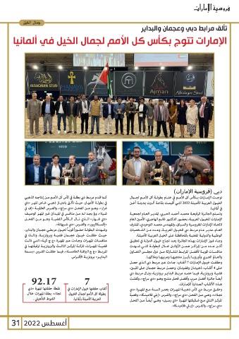 نقطة حققتها المهرة «دي ألقاب حققتها خيول الإمارات في وحققـت خيـول الإمـارات 7ألقـاب ،جـاءت عـر مربـط دبي الـذي حصـل