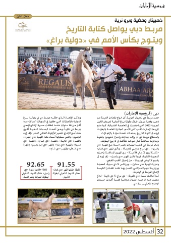 92.65 91.55 ونـال مربـط دبي ذهبيـة المهـرات بعمـر السـنة مـع المهـرة «دي