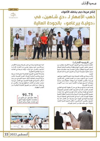 91.75 وكــا لفــت إنتــاج مربــط دبي مــن أســطورة الإنتــاج العالمــي