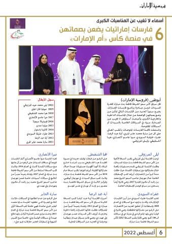 عـى الرغـم مـن عـدم انتظامهـا في السـباقات ،مازالـت أحــرزت الفارســة آيــة عبــد الرضــا لقــب النســخة تعتـر الفارسـة عفـراء السـويدي مـن أبـرز الفارسـات