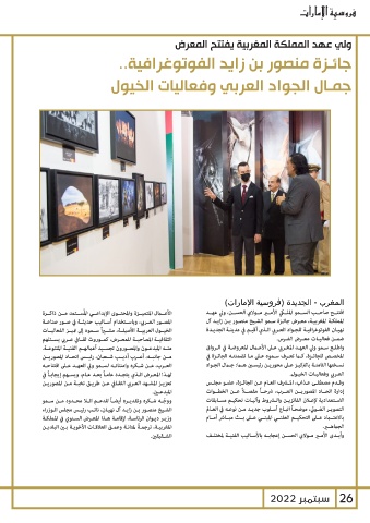 منـه المبدعـون والمصـورون تجسـيد أعمالهـم الفنيـة المتنوعـة. نهيـان الفوتوغرافيـة للجـواد العـربي الـذي أقيـم في مدينـة الجديـدة