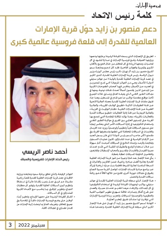 رئيس اتحاد الإمارات للفروسية والسباق المناسـبات ،ومنحهـا الريـادة في كل المحافـل مـن خـال التتويـج بالألقاب
