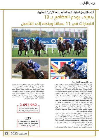 سبتمبر 33 2022 منجبـة ،حيـث أنجبـت «حكـم» الفائـز بسـباق الفئـة الأولى ،وهـو
