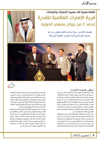 بمناسـبة هـذا الإنجـاز المميـز ،والـذي حققتـه القرية في هـذا المحفل فـازت قريـة الإمـارات العالميـة للقـدرة بالوثبـة بثـاث مـن جوائـز