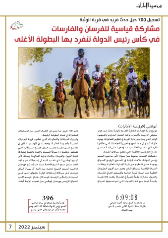 396 وفارســاً ،فيــا بلــغ عــدد الخيــول التــي تــم تســجيلها للســباق