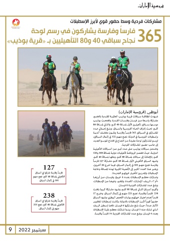 سبتمبر 9 2022 وشـهد السـباق التأهيـي الأول لمسـافة 40كلـم ،مشـاركة 127فارسـاً