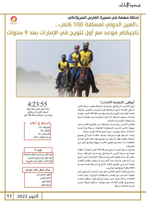 ساعة الزمن الذي سجله بطل تـوج الفـارس السريلانـي روشـندران ناجيـكام بلقـب سـباق العـن