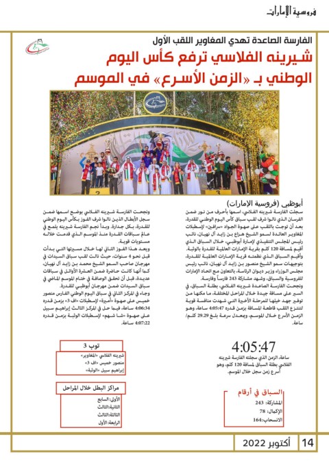 ونجحــت الفارســة شــرينه الفــاسي بوضــع اســمها ضمــن أبوظبي (فروسية الإمارات)