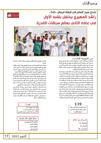 أن يحقـق نتائـج جيـدة ،وبعـد اجتيـازه للسـباقات التأهيليـة، الإمــارات للفروســية والســباق ،وشــهد مشــاركة 139فارســاً