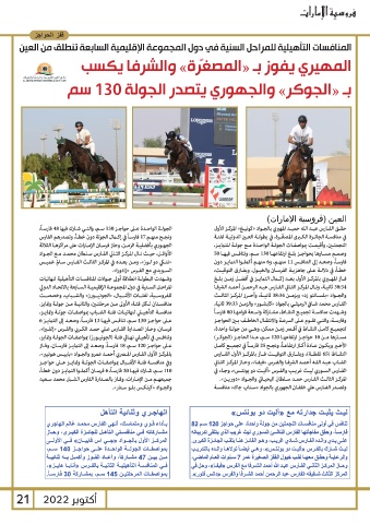 الأوائـل ،حيـث نـال المركـز الثـاني الفـارس سـلطان محمـد مـع الجـواد في منافسـة الجائـزة الكـرى المص ّغـرة ،في بطولـة العـن الدوليـة لفئـة