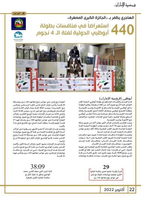 الجولـة الواحـدة عـى حواجـز ارتفاعهـا 120سـم ،وشـارك فيهـا 57 الإمــارات للفروســية والســباق ،وبرعايــة ومســاندة مجلــس أبوظبــي