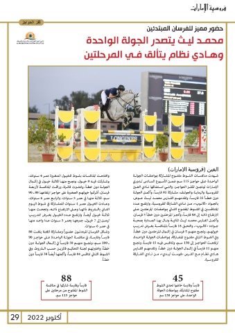 الارتفـاع ذاتـه إلى 88فارسـاً ،وأنجـز المرحلتـن دون خطـأ 5فرسـان،