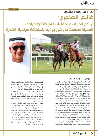 إيجابـاً عـى تعزيـز ملـف اسـتضافة الإمـارات». لبطولــة العــالم للقــدرة في الإمــارات بقريــة بوذيــب ،هــي ثمــرة